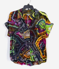 I came up with the cold mist method while trying to speed up geode tie-dye. Ice dyeing a single geode shirt normally takes a full day to batch, which slows down the feedback loop. I wanted to see results faster so I could adjust how I was tying and applying color without waiting 24 hours every time.