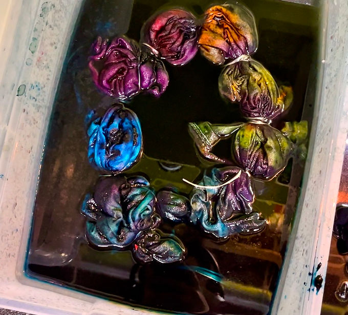 A hot soak is a shortcut for ice dyers who want to see their results faster. Instead of waiting 24 hours at room temp, you soak the item in hot water to set the dye faster.