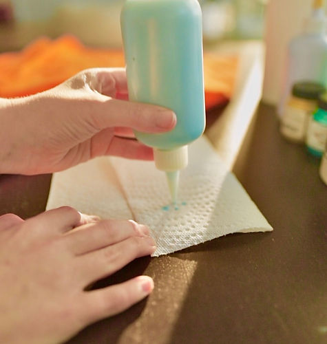 The paints were combined into a squeeze bottle using a funnel from my tie-dye supplies.